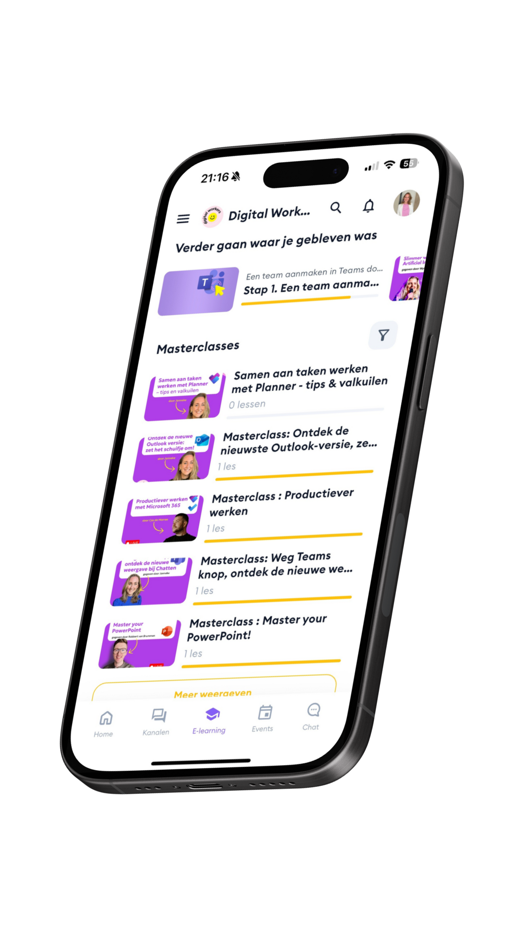De basis van Microsoft 365 leren én bijblijven met de nieuwste ontwikkelingen was nog nooit zo makkelijk! In onze online leeromgeving vind je online trainingen, masterclasses en korte & heldere tips gericht op digitaal samenwerken. We helpen je niet alleen om de basis onder de knie te krijgen, maar blijven je ook inspireren met wat er allemaal mogelijk is. Zo blijf je moeiteloos bij, haal je meer uit je werk en blijft digitaal samenwerken leuk!